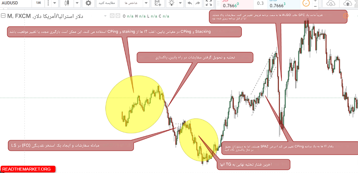 - میتوانیم ببینیم که چگونه سفارشات انباشته میشوند و ارتفاعات و پایینترینها را برای FO ایجاد میکنند تا BO تریدرها و استاپها را به دست آورند. این کار یک استخر بزرگ از نقدینگی برای آنها ایجاد میکند. آنها چگونه وارد یک برنامه CP میشوند و سفارشات را جابهجا میکنند و خود را در موقعیت قرار میدهند که منجر به افزایش نقدینگی از یک نوع خلأ میشود. من یک چارت در پایین کشیدهام. هر ناحیهای برچسبگذاری نشده اما شما ایده را متوجه میشوید. ***نکته: من در این مرحله در واقع چارت را علامتگذاری نمیکنم، این تنها برای مقاصد نمایشی است***