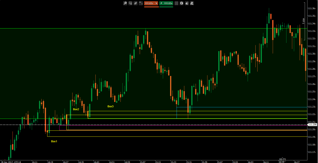 با نگاهی به گذشته (لطفا به نمودار پایین مراجعه کنید)، متوجه شدم که به نظر میرسه MPL یکی از اعضا واکنشی به باکس ۳ بوده و شاید دلیل اینکه قیمت توی اونجا نگه نداشت هم همین باشه. فکر میکنم نوعی فشردگی (کمپرسیون) در باکس ۲ و ۳ وجود داشته. چون فشردگی بوده، باید در ابتدا و انتهای اون، سفارشهای قوی وجود داشته باشه. در مورد باکس ۳، سفارشها کاملا مصرف شدن وقتی قیمت کاملا به اون ناحیه رسید و MPL همون یکی از اعضا تشکیل شد. بنابراین، قیمت فقط میتونست در انتهای دیگه فشردگی که سفارشهاش کاملا مصرف نشده بودن، یعنی باکس ۲، برگرده. امیدوارم منظورتو اشتباه متوجه نشده باشم اِدج. آیا mpl رو درست در آوردم ؟