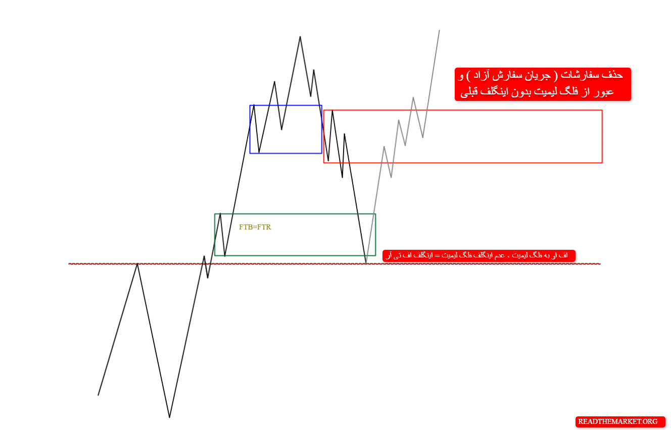 با این حال ، در سناریوی بعدی ، اگرچه قیمت یک FTR را Engulf کرده است ، اما با FO به هدف خود رسیده است . بنابراین ، جریان سفارش از FL بالایی حذف می شود و قیمت به راحتی از آن عبور می کند .