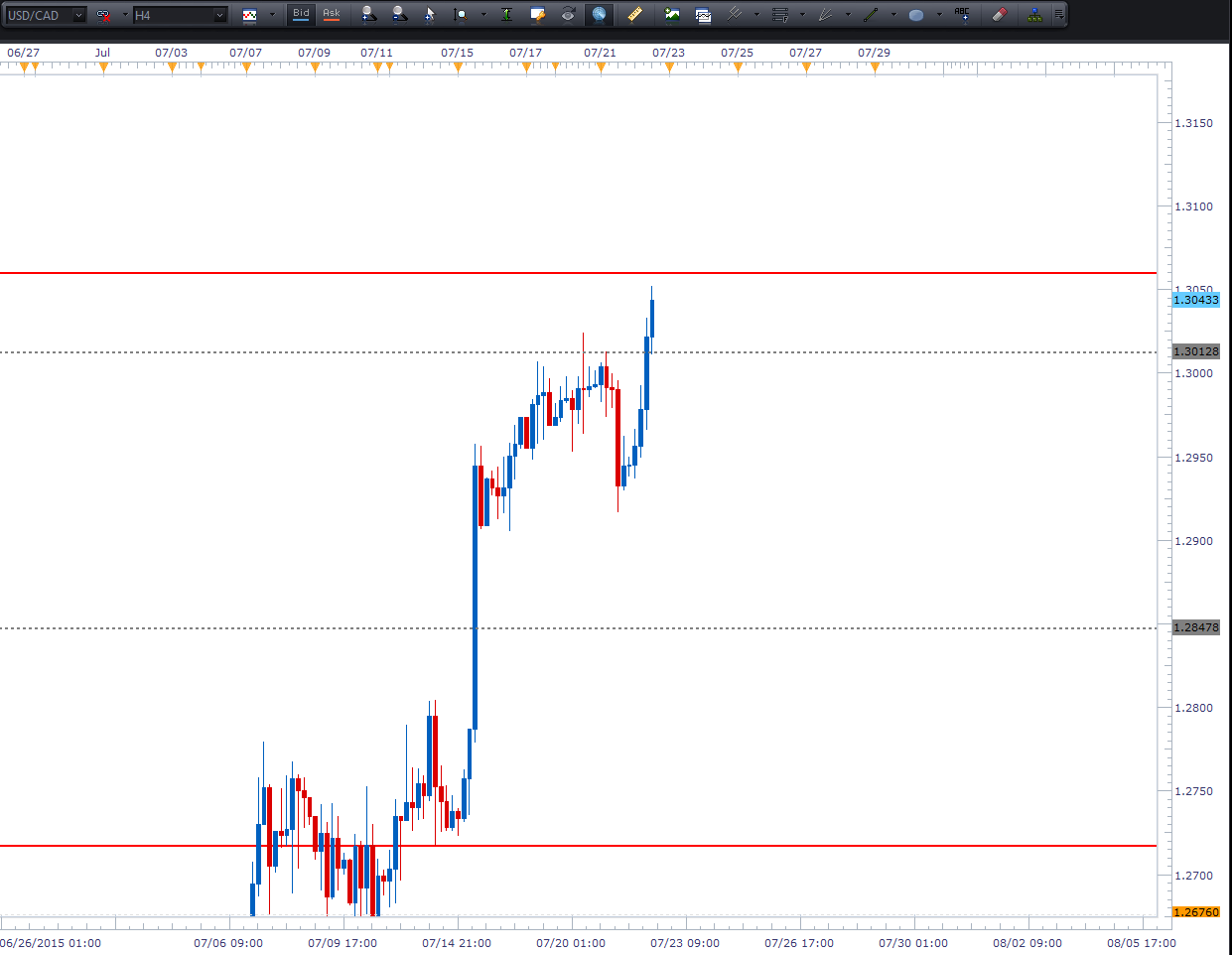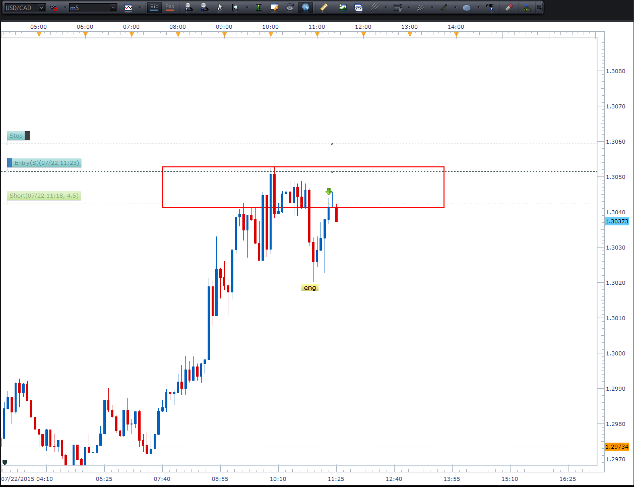 اچ : باز یه شکست روحی مزخرف دیگه که کلی ضرر بهم زد. زودتر از موعد با یه سود کوچیک معامله رو بستم و فرصت نکردم از همه ی سود این ستآپ استفاده کنم. این USD-CAD هستش و من دیروز شورت کردم .