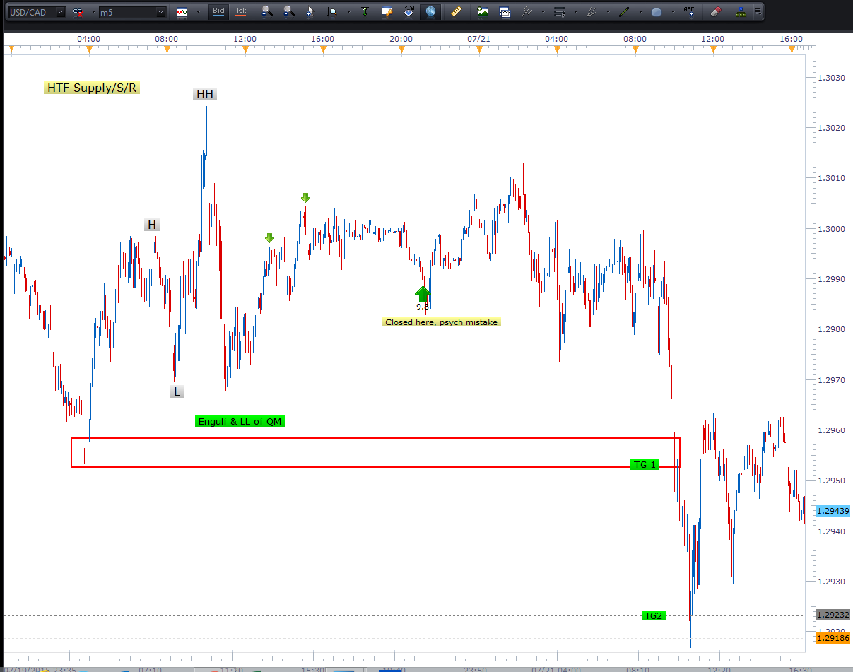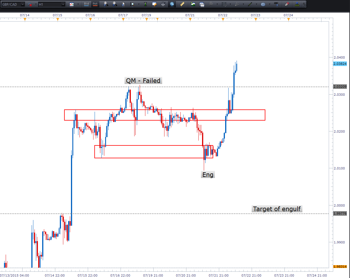 اچ : وضعیت GBP/CAD – QM به شکست انجامید… نمیدونم چرا. از نظر من که خیلی خوب به نظر میرسید. اینگلف قیمتی که اتفاق افتاد به تارگت خودش نرسید. این QM در محدودهی عرضه HTF اتفاق افتاد، ساختار QM خوب بود، و روی چارت یک ساعته اتفاق افتاد. این یکی واقعا منو گیج کرده .