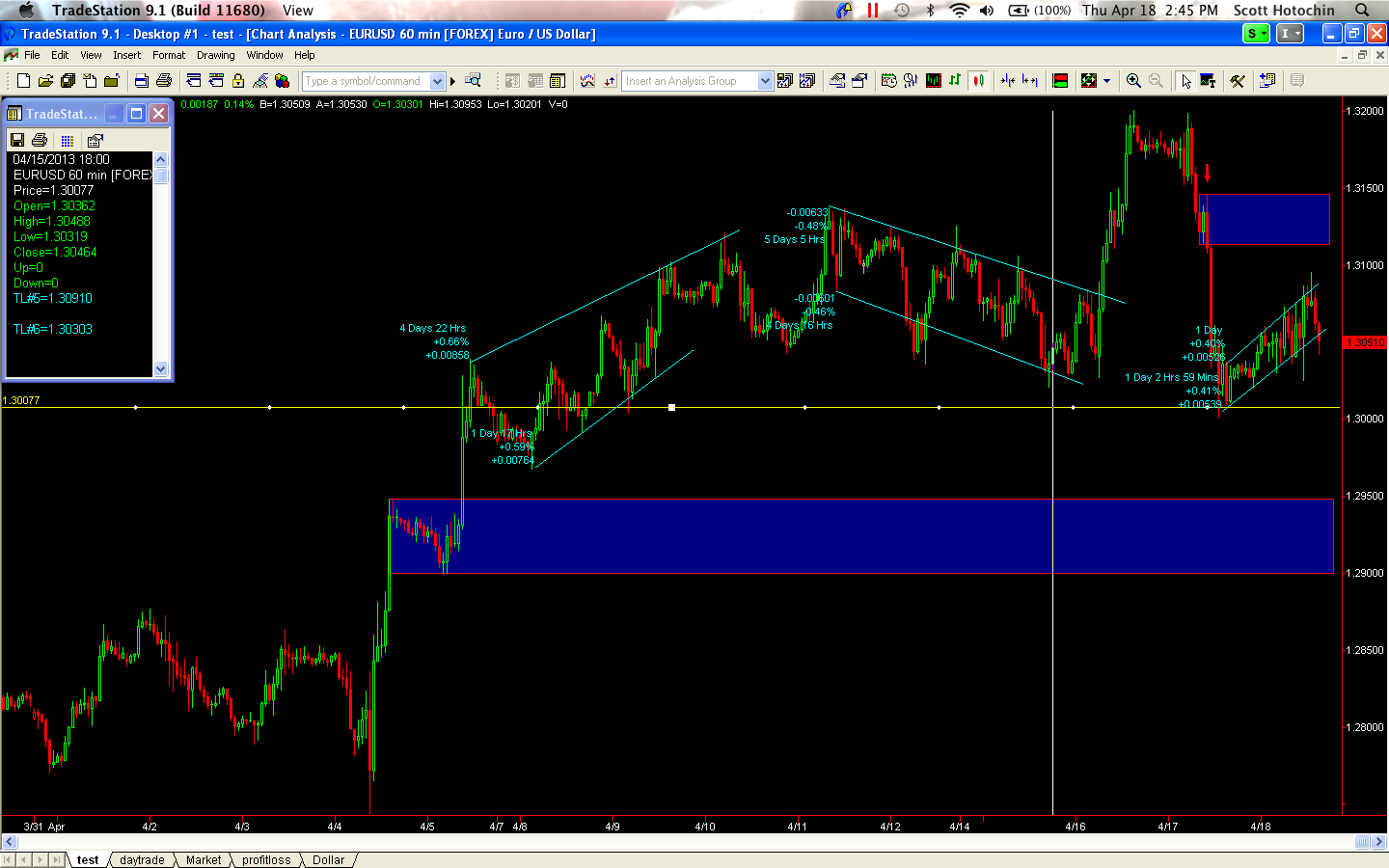 اچ ادامه می دهد : سلام ایف، اگه فرصت داشتی، میشه یه نگاهی به پستهای ۹ و ۱۹ تو دفترچهام بندازی؟ خیلی کنجکاوم ببینم راجع به تازگیِ زونها چی میگی. تو دفترچهام چند تا زون رو علامت زدم و دیدم که با وجود شکسته شدن یکی از اونا، قیمت بازم بالاتر رفت. هر چی هست تو پست نوشتم. فقط کنجکاوم ببینم نظر یه نفر با تجربه چیه. روی چارت که صبح گذاشتم، ترکیب استفاده از CP و FTR/FTB رو نشون دادم. این ناحیههایی که فکر میکنم پیدا کردم، وقتی قیمت برمیگرده، چند بار تلاش میکنه تا ازشون رد بشه. به همین خاطر فکر میکنم درست پیداشون کردم. چارت صبح با تایم فریم 5 دقیقهای و 1 دقیقهای EUR/USD جالبه چون نمیدونم اینو میشه بلع (engulf) حساب کرد یا نه؟؟؟ قیمت واکنش نشون داد، ولی فقط با یه کندل سبز. تشکر فراوان. اچ