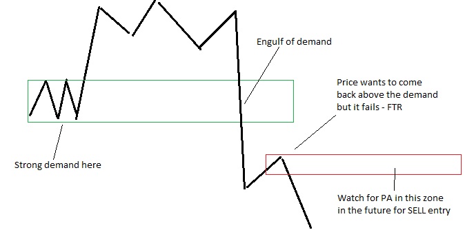 یکی از اعضا : من متخصص نیستم اما برای من ، FTR مکانی است که یک نقطه تصمیم گیری مهم در آن اینگلف شده است ( به عنوان مثال منطقه تقاضای قوی اینگلف شده است ) و پس از آن قیمت به عقب برمی گردد ، انگار که می خواهد به بالای تقاضای شکسته شده برگردد اما موفق نمی شود و در جهت اینگلف حرکت می کند .