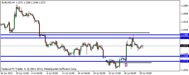 7. به مرحله 6 نگاه کنید ، اگر برای مثال به یک ناحیه عرضه نزدیک می شویم ، نگاه کنید که اولین ” منطقه مشکل ” شما کجا می تواند باشد . آیا فاصله ی بین ناحیه عرضه و ” منطقه مشکل ” حداقل ریوارد یک است ؟ اگر بله ، پس مشکلی نیست ، اگر نه از معامله صرف نظر کنید . همچنین به نقاط تصمیم گیری برای استاپ های خود نگاه کنید ، مطمئن شوید که با اندازه استاپ شما مطابقت دارد .