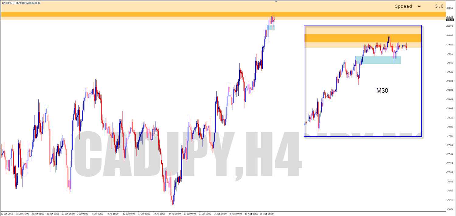 پدینی : از این که با قدرت و قاطعیت به سطح مورد نظر نزدیک شدین خوشم اومد، اما یه کم نگرانم از تقاضایی که درست قبل از رسیدن به سطح ایجاد شد (تو نمودار اچ چهار بعدی که تو ادامه میاد نشون داده شده) و تو نمودار ام 30 هم خیلی واضح بود.