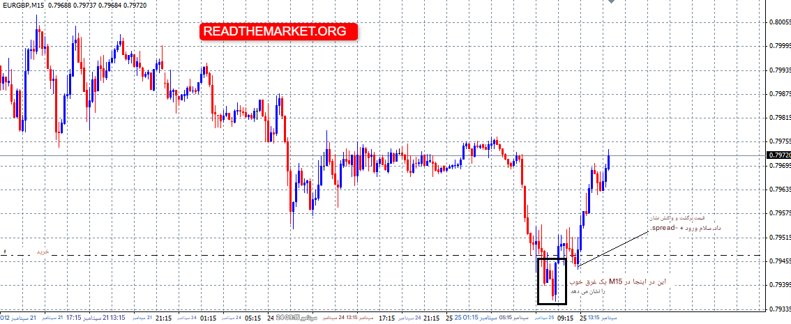 پدینی : یه PA خیلی خوب روی EURGBP داشتم. یه واکنش روی H4 دیدم و روی M15 وارد شدم.