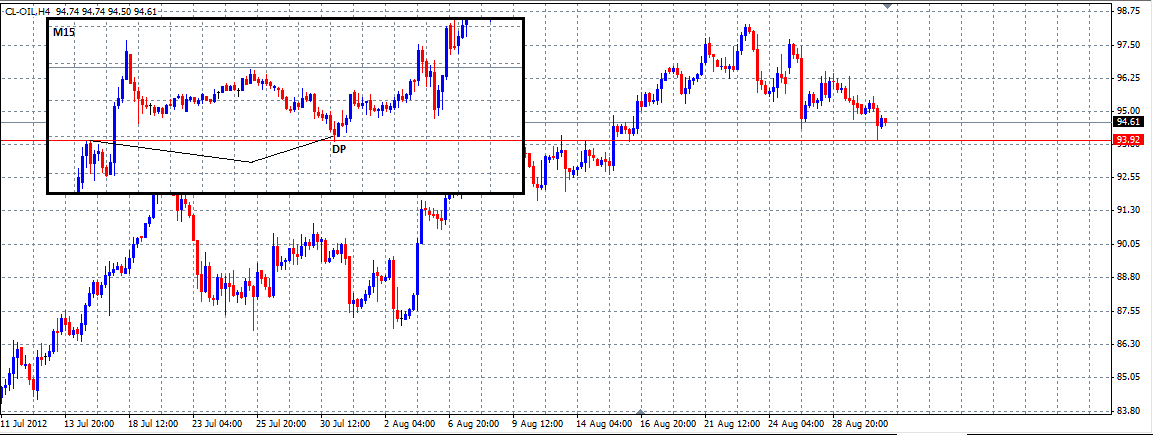 پدینی :‌ پولبک بزرگ یورور دلار استاپ من را زد . اشتباه این بود که معامله‌ام را مدیریت نکردم . دفعه بعد مقداری از معامله را در یک منطقه مقابل برداشت می‌کنم و BE را تنظیم می‌کنم (‌ ریسک فری می کنم ) . نمودار بعدی مربوط به معامله نفت خام است که قصد دارم به دلایلی که در نمودار نشان داده شده است کمی بیشتر نگه دارمش !