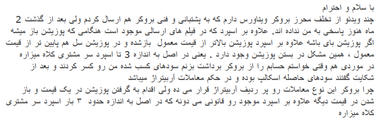 - 1 – سیستم معیوب و کلاهبرداری در اجرای دستورات : این بروکر با دستکاری عمدی پلتفرم معاملاتی ، اقدام به کلاهبرداری سازمان یافته می نماید . به گونه ای که : پوزیشن خرید ( Buy ) در قیمتی بالاتر از نرخ واقعی بازار گشوده می شود . پوزیشن فروش ( Sell ) در قیمتی پایین تر از نرخ واقعی بازار گشوده می شود . این اختلاف قیمت غیر منطقی ، علاوه بر اسپرد معمول اعمال شده و در عمل ، سرمایه مشتری را معادل حدود سه برابر اسپرد واقعی بلافاصله پس از باز کردن پوزیشن از دست می دهد .